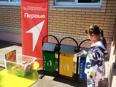 В детском саду установлены специальные контейнеры для разных видов отходов, чтобы дети могли легко сортировать мусор.