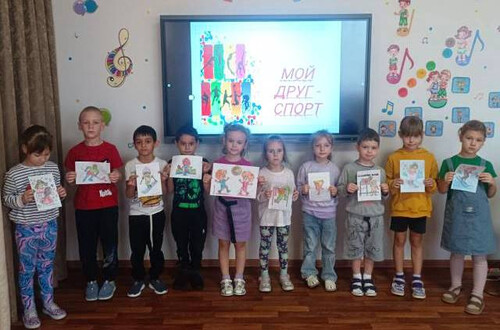 Ребята познакомились с играми народов России, в которых приняли активное участие. Также была проведена викторина «Мой друг – спорт», где дети проявили свои знания о различных видах спорта, отгадывали загадки, рисовали рисунки на спортивную тематику. В заключении викторины было сделано фото ребят с их рисунками.